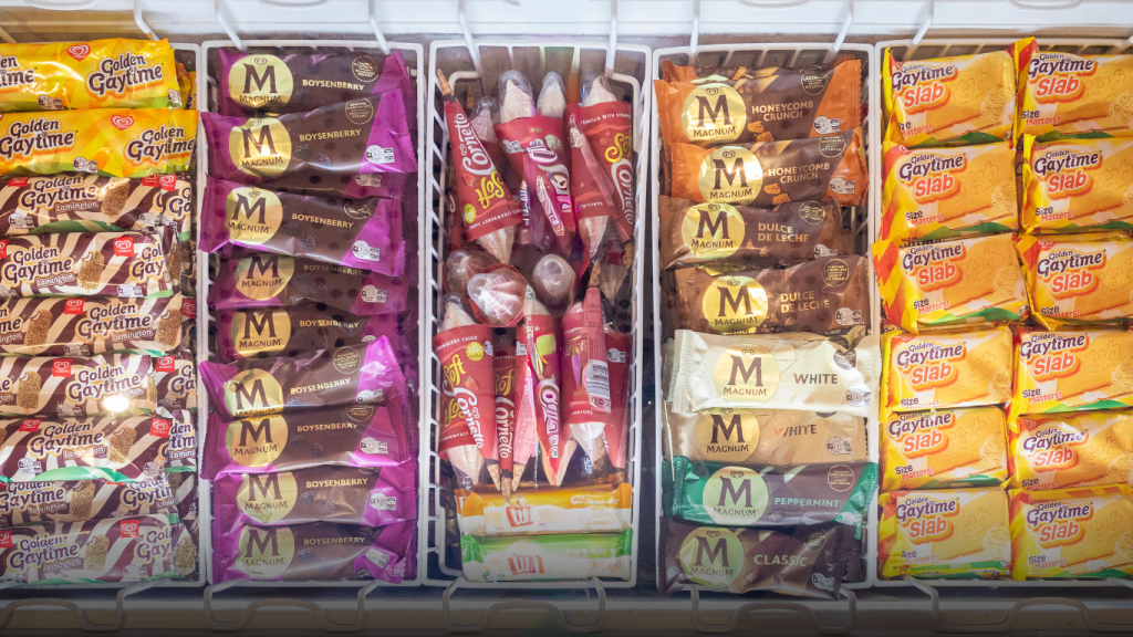 Paddle Pop sales reached the volume of an Olympic swimming pool, with chocolate flavour beating rainbow. Weis Bars used more than 2.4 million Australian Kensington Pride mangoes and 34.5 tonnes of macadamias. Magnum’s cracked chocolate tally was substantial enough to coat Federation Square several times.