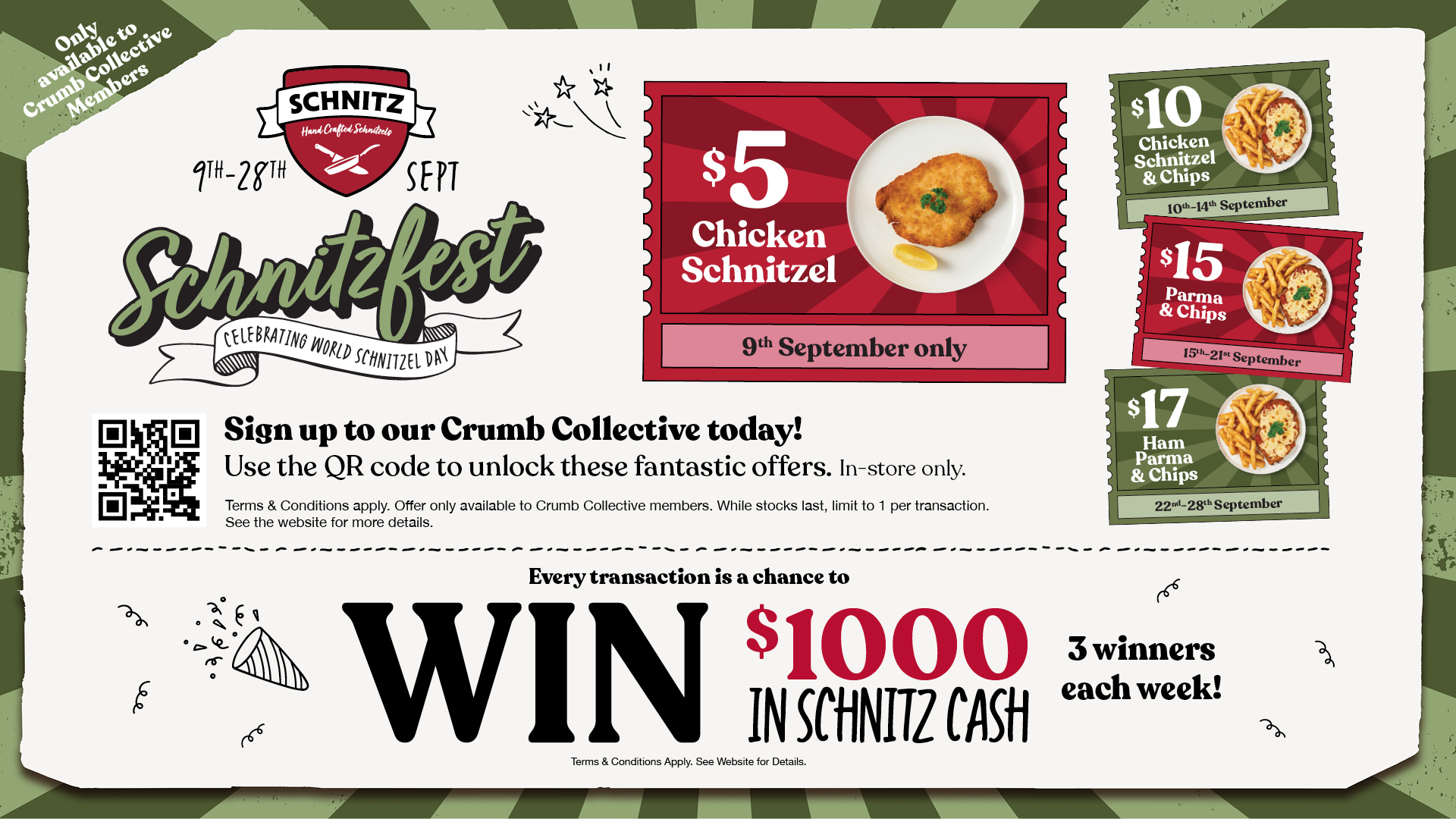 To sweeten the deal, nine diners will also score $1,000 in Schnitz Cash just for joining their Crumb Collective loyalty program and making a purchase during Schnitzfest.
